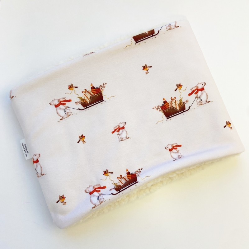 Cuello o Buff de punto jersey de algodón orgánico, su interior es de borreguito muy calentito, ideal para los días de frio.