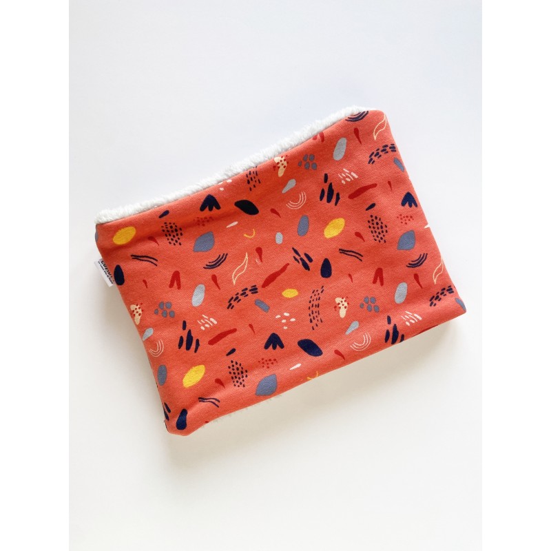 Cuello o Buff de punto jersey de algodón orgánico, su interior es de borreguito muy calentito, ideal para los días de frio.