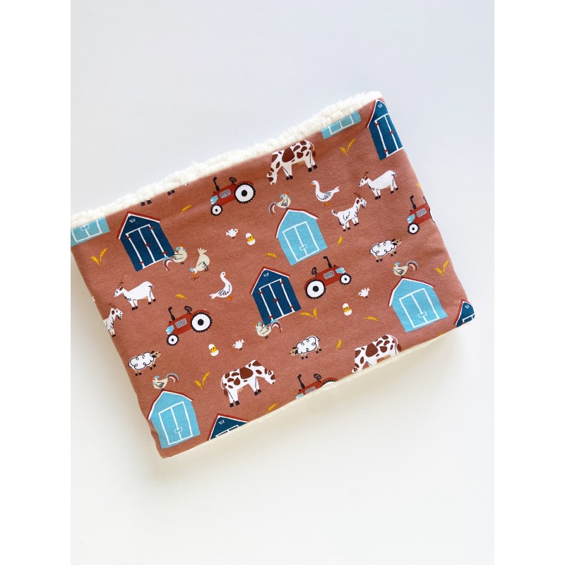 Cuello o Buff de punto jersey de algodón orgánico, su interior es de borreguito muy calentito, ideal para los días de frio.