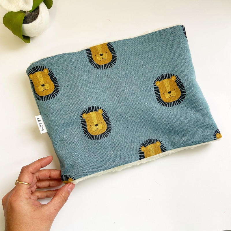 Cuello o Buff de punto jersey de algodón orgánico, su interior es de borreguito muy calentito, ideal para los días de frio.
