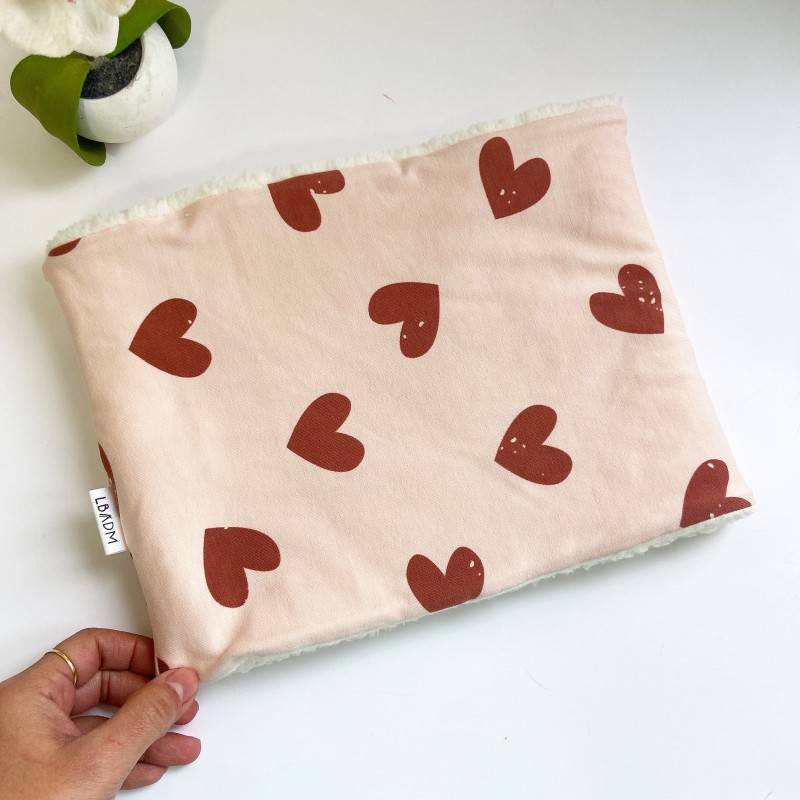 Cuello o Buff de punto jersey de algodón orgánico, su interior es de borreguito muy calentito, ideal para los días de frio.