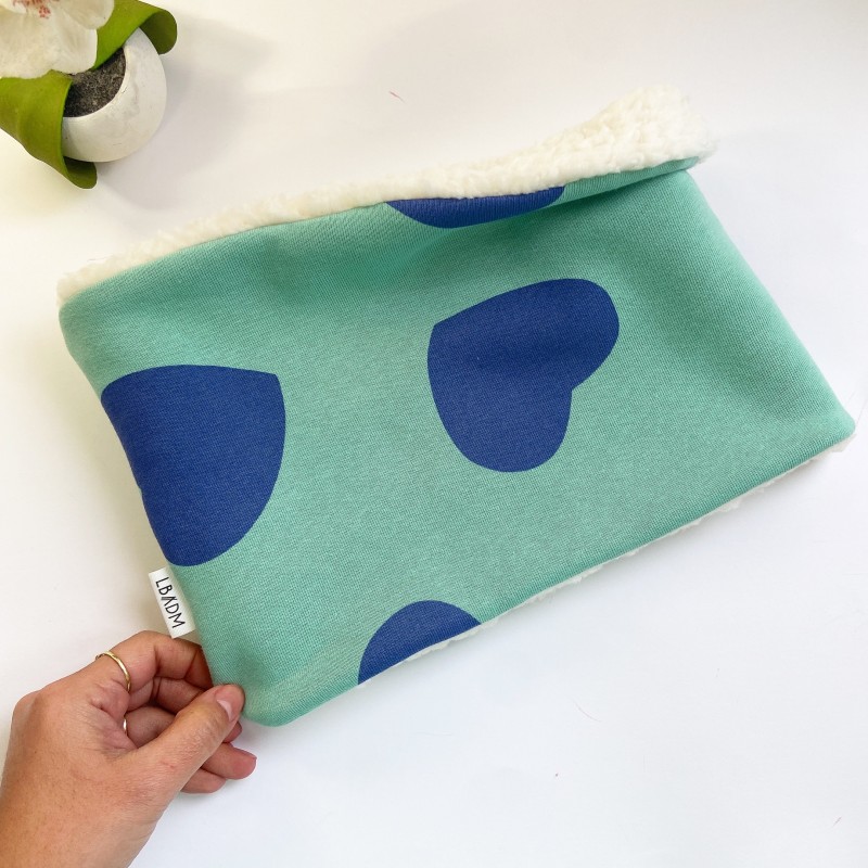 Cuello o Buff de punto jersey de algodón orgánico, su interior es de borreguito muy calentito, ideal para los días de frio.