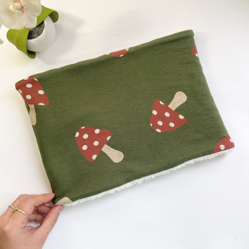 Cuello o Buff de punto jersey de algodón orgánico, su interior es de borreguito muy calentito, ideal para los días de frio.