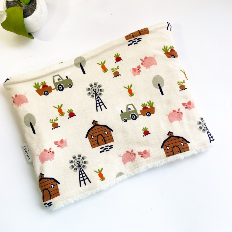 Cuello o Buff de punto jersey de algodón orgánico, su interior es de borreguito muy calentito, ideal para los días de frio.