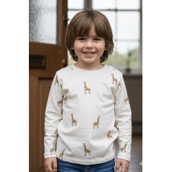 Camiseta básica de manga LARGA con estampado infantil en algodón orgánico. La flexibilidad del cuello hace que sea mas fácil de quitar y poner, son suaves y cómodas.