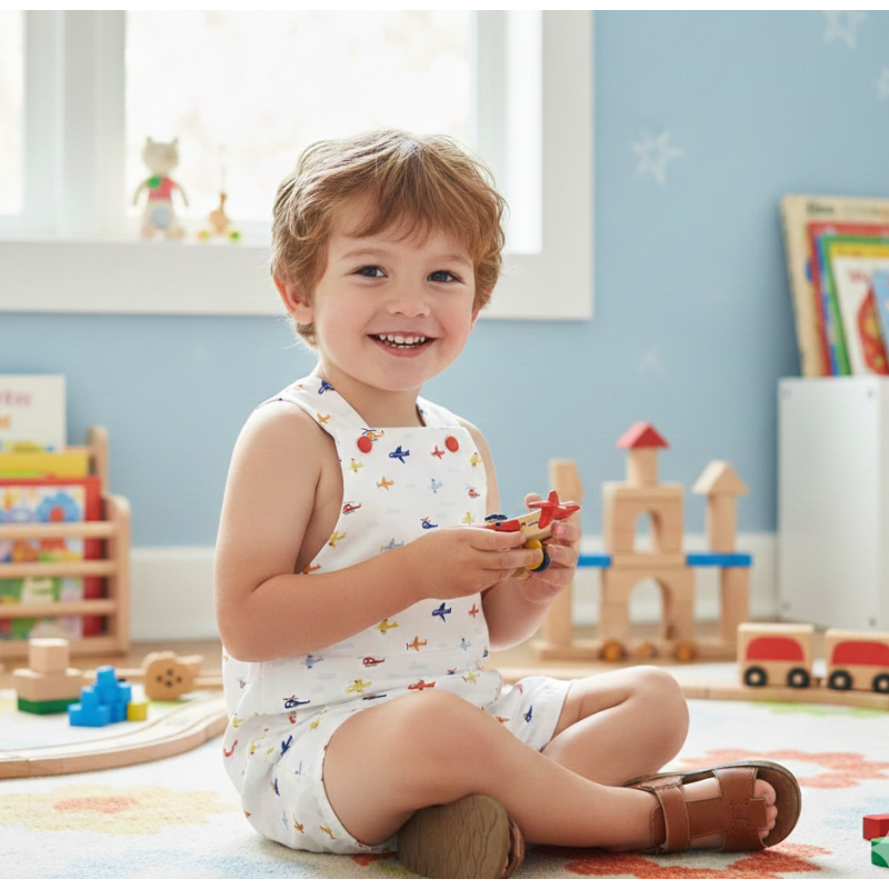 Peto de bebé con estampado de AVIONES, un diseño delicado, atemporal y lleno de encanto para el verano, Su estampado aporta un aire dulce y original, ideal para quienes buscan una prenda especial, diferente y cómoda.