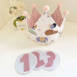 Corona reversible con 3 numeros intercambiables, tela exterior estampada, tela interior VICHY. LISTO PARA ENVIO